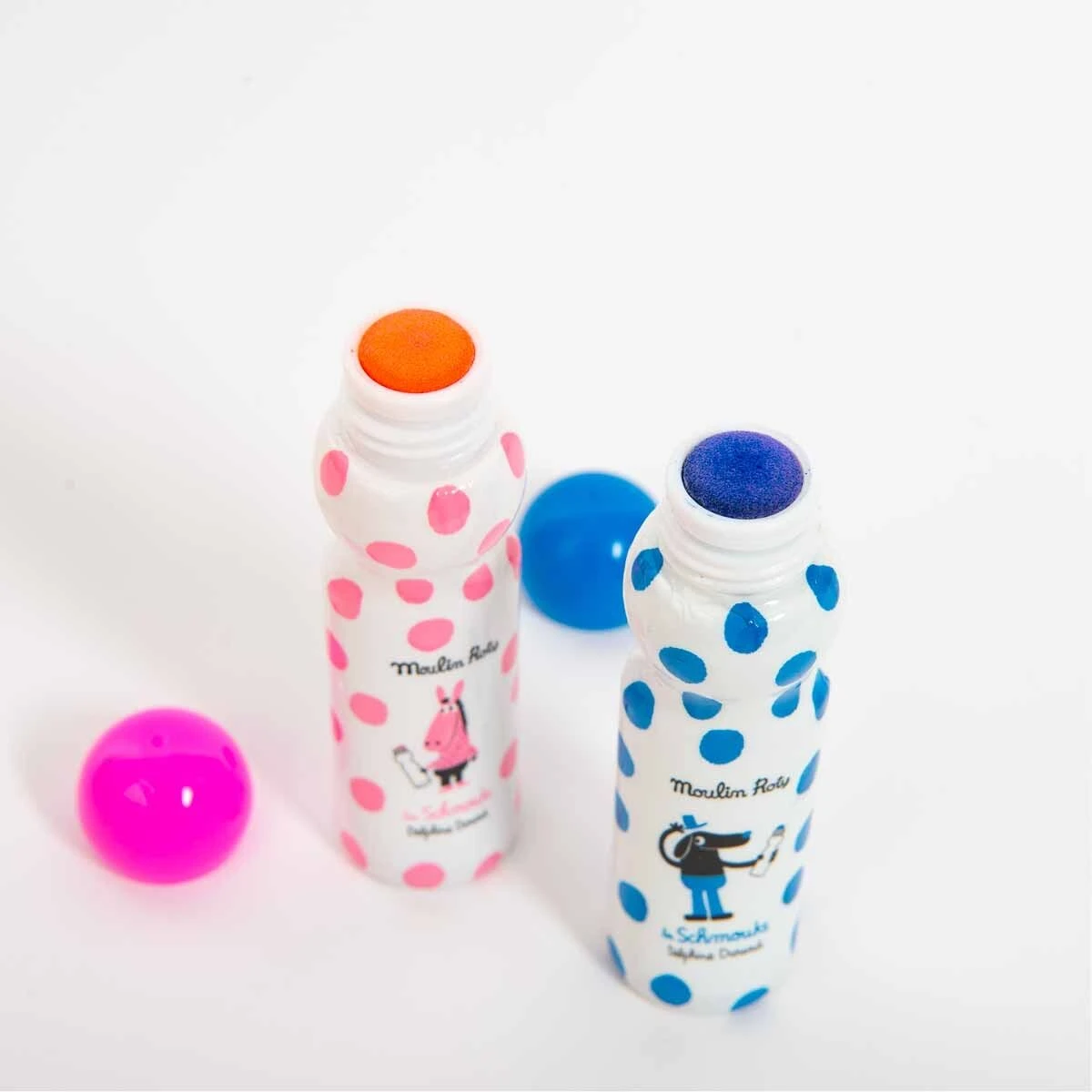 De gros marqueurs à l’effigie des Schmouks, pour faire des pois de toutes les couleurs ! Tout en rondeur avec leur capuchon boule, ils sont très faciles à saisir, prêts à recouvrir nos gentils monstres poilus de millions de gros pois !