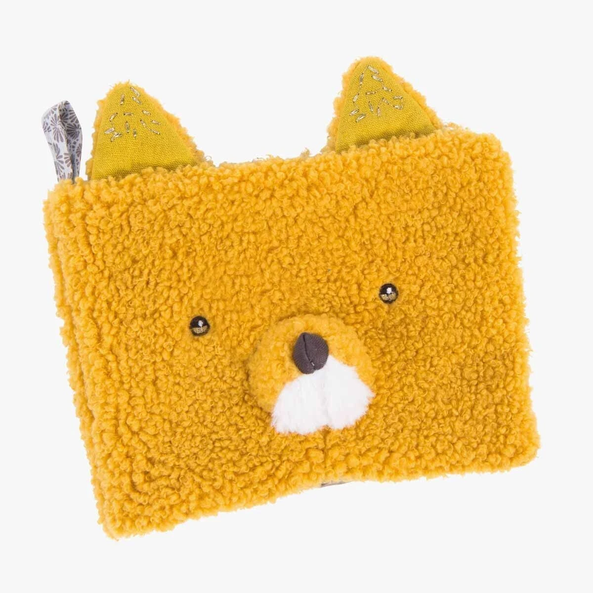 Album photo à la douce couverture en fourrure moutarde, représentant Chaussette le renard. Pour garder les photos souvenirs bien au chaud. Peut être brodé au prénom de l’enfant. Peut être brodé au prénom de l’enfant. Idéal pour un cadeau naissance.