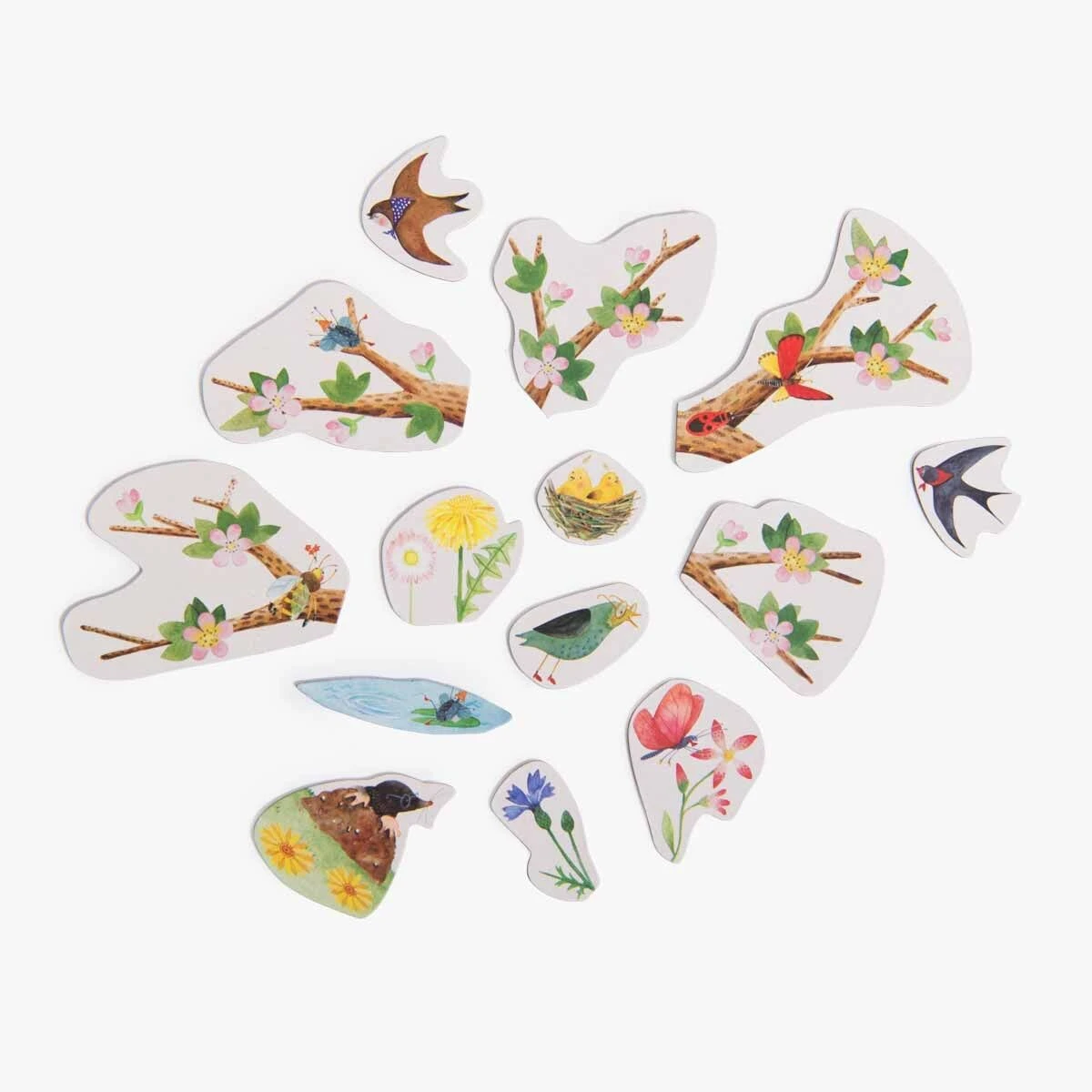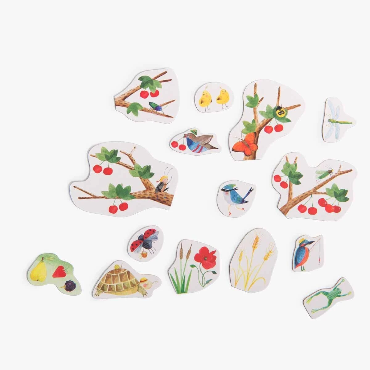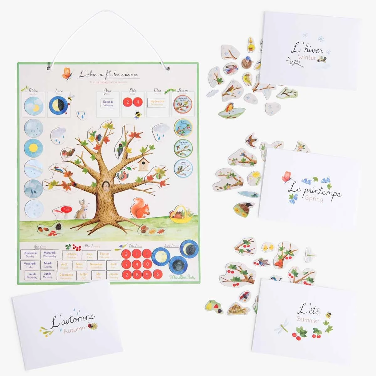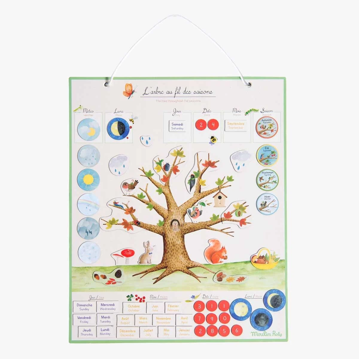 Grand calendrier comprenant plus de 100 magnets pour se repérer dans le temps et apprendre les saisons, en habillant l’arbre illustré au fil de l’année. Il comprend aussi 4 enveloppes pour ranger chaque saison.