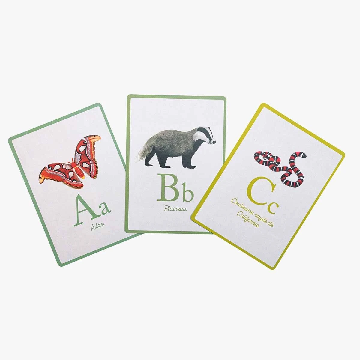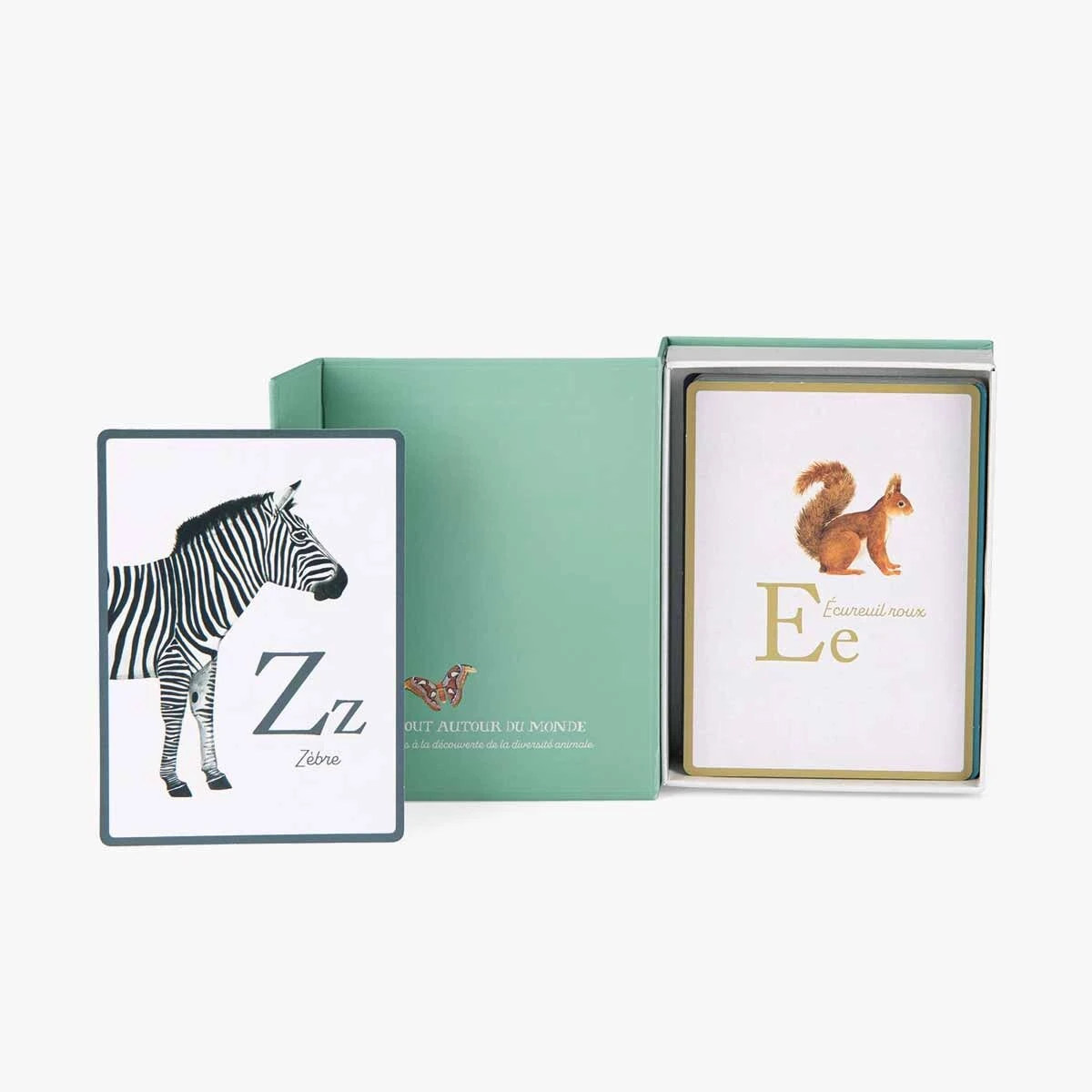 A comme Atlas, B comme Blaireau…Découvre les 26 lettres de l’alphabet, tout en apprenant le nom des animaux du monde grâce à ces cartes joliment illustrées. Une manière ludique de faire prendre conscience aux enfants de la diversité des espèces animales