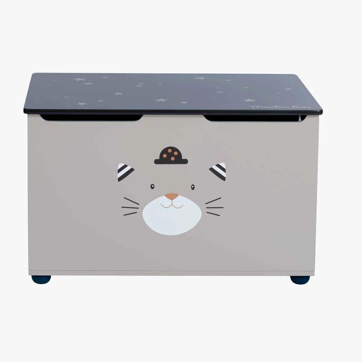 Pour ranger tous ses jouets, un coffre déco de belle contenance, en bois peint aux couleurs et illustrations de la gamme. Il est muni d’un vérin de sécurité pour accompagner le mouvement du couvercle et conçu pour préserver les petites mains.
