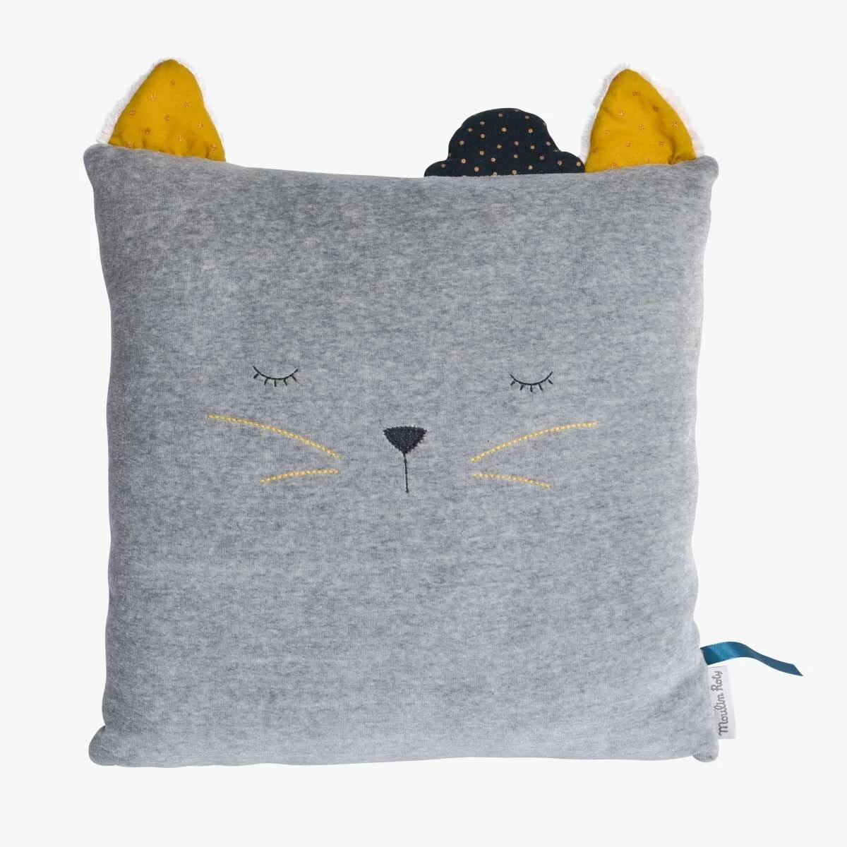 Un joli coussin gris reprenant le chat de la gamme pour décorer la chambre de votre enfant.