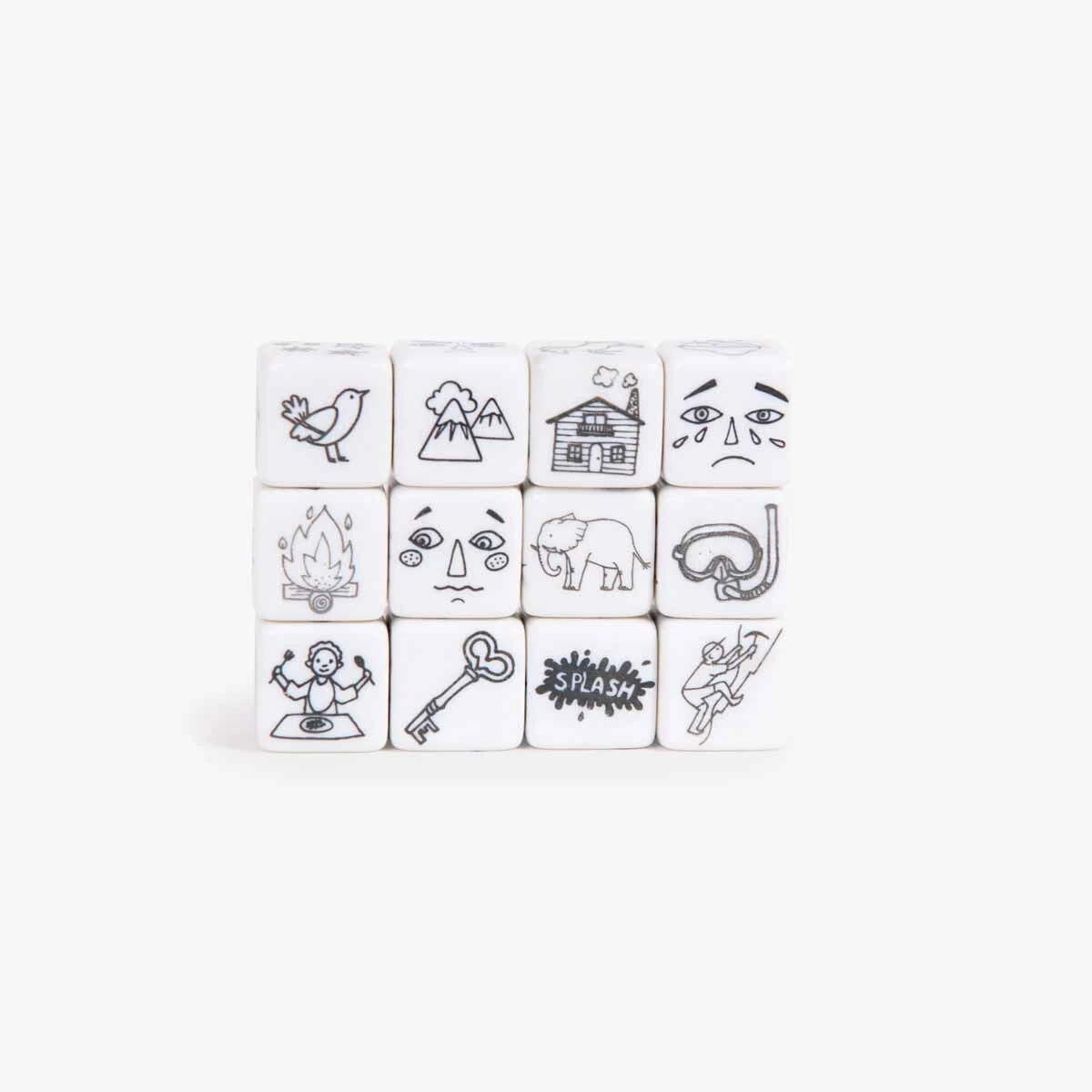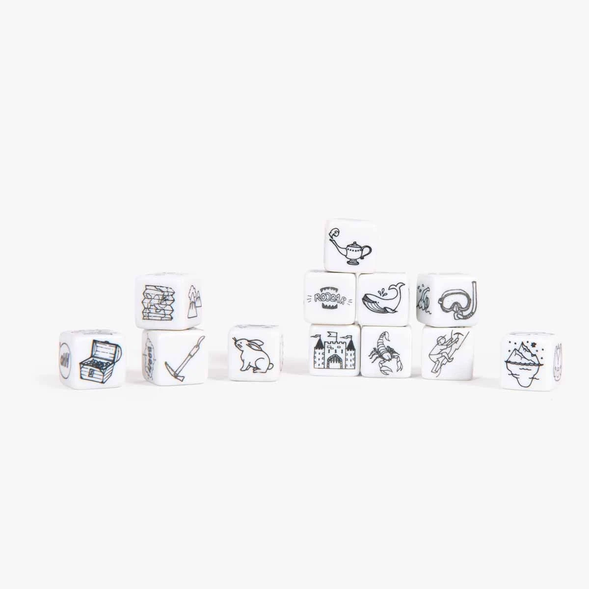 Parfaits pour la veillée au coin du feu : 12 dés illustrés à lancer simultanément ou chacun son tour pour inventer une histoire collectivement, ou à compléter l’un après l’autre. Pas de perdant ni de gagnant, seulement des histoires à inventer !