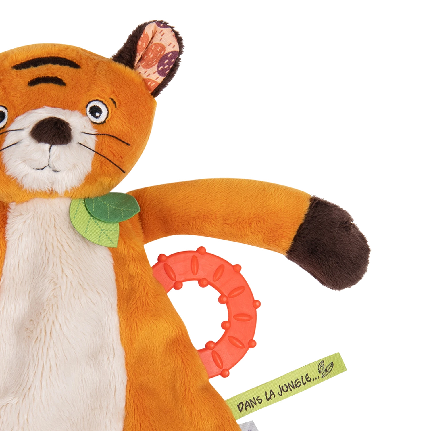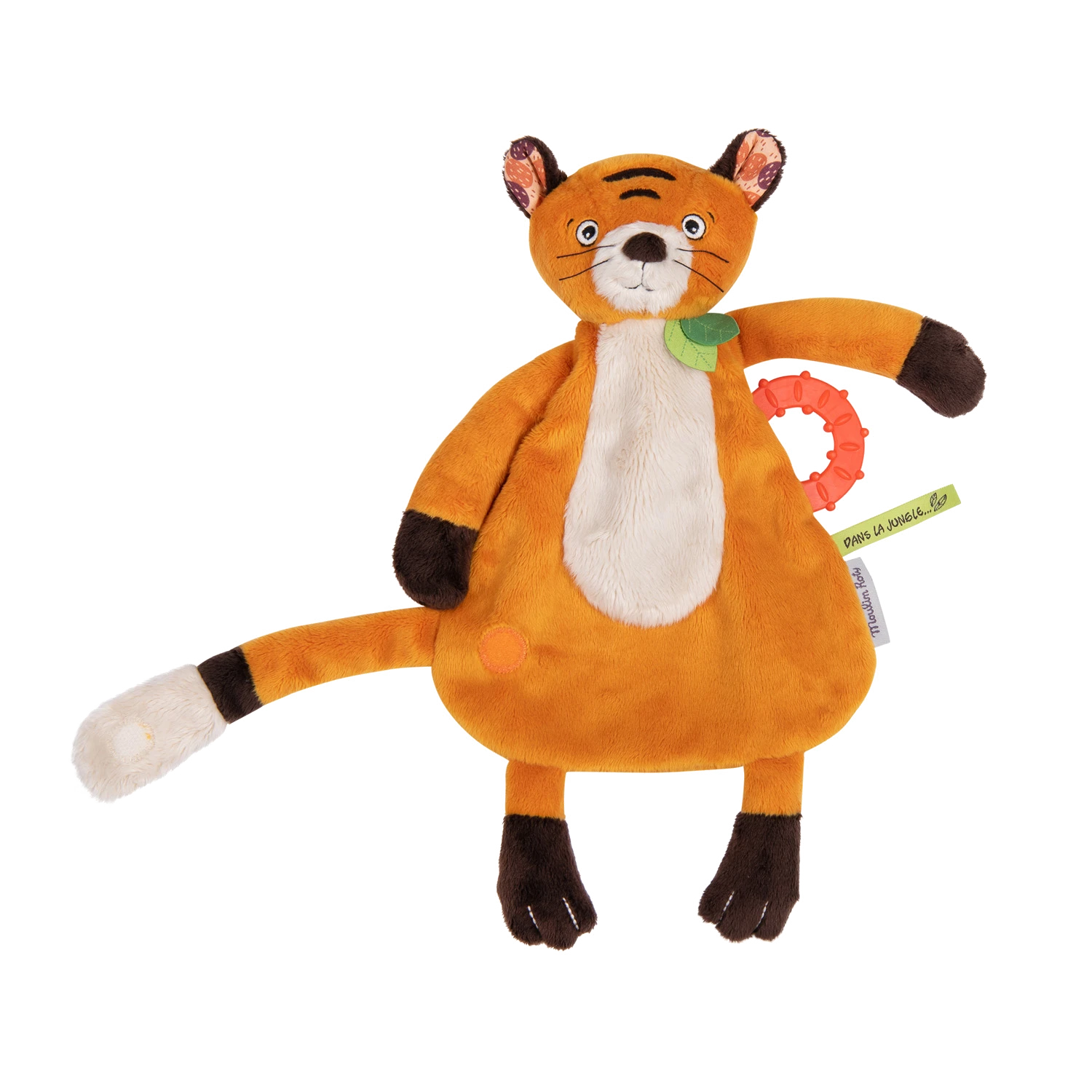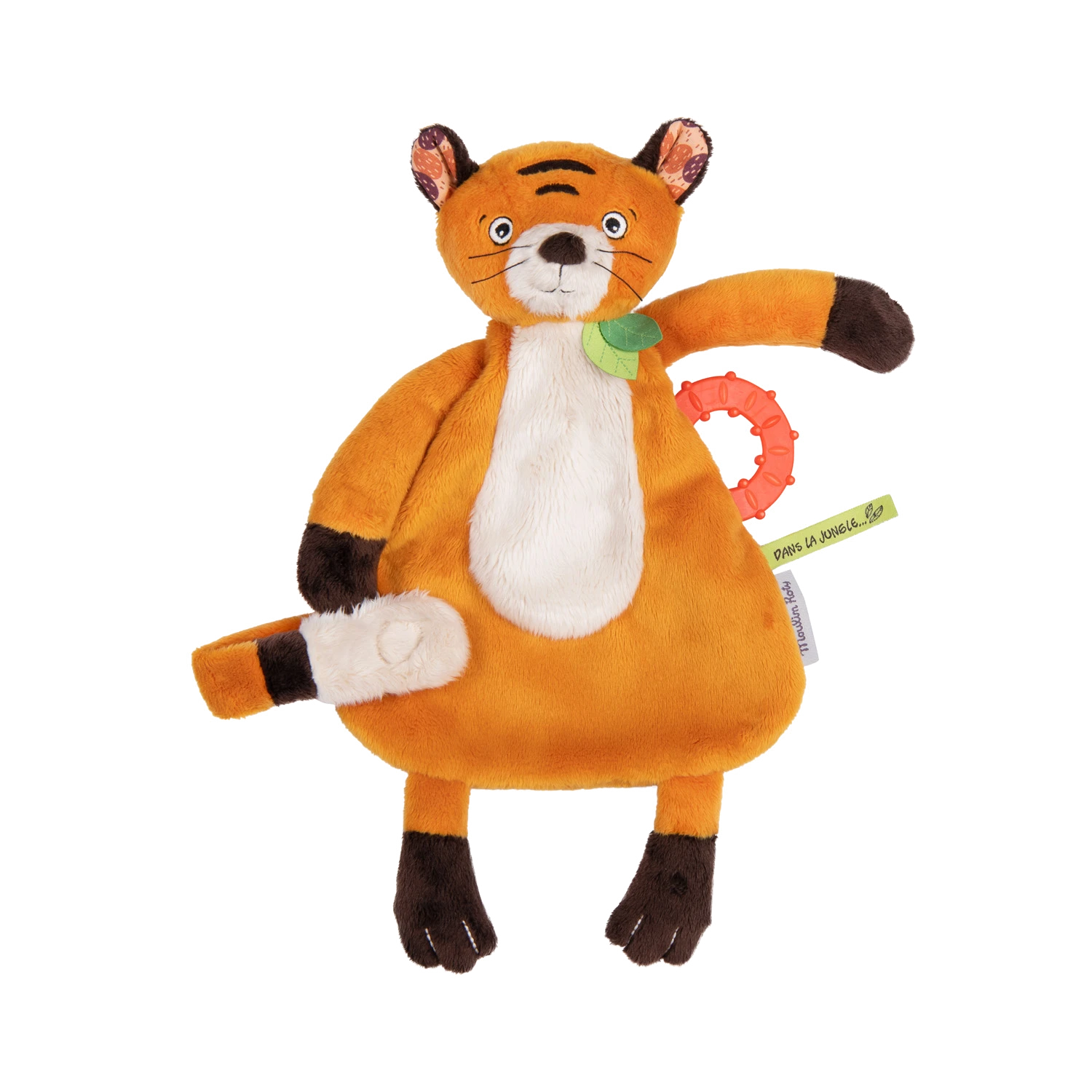 Ce doudou tigre au pelage bicolore suivra bébé dans toutes ses aventures. Comporte un anneau pour soulager les poussées dentaires ainsi qu’un attache-tétine pour en faire un compagnon inséparable.