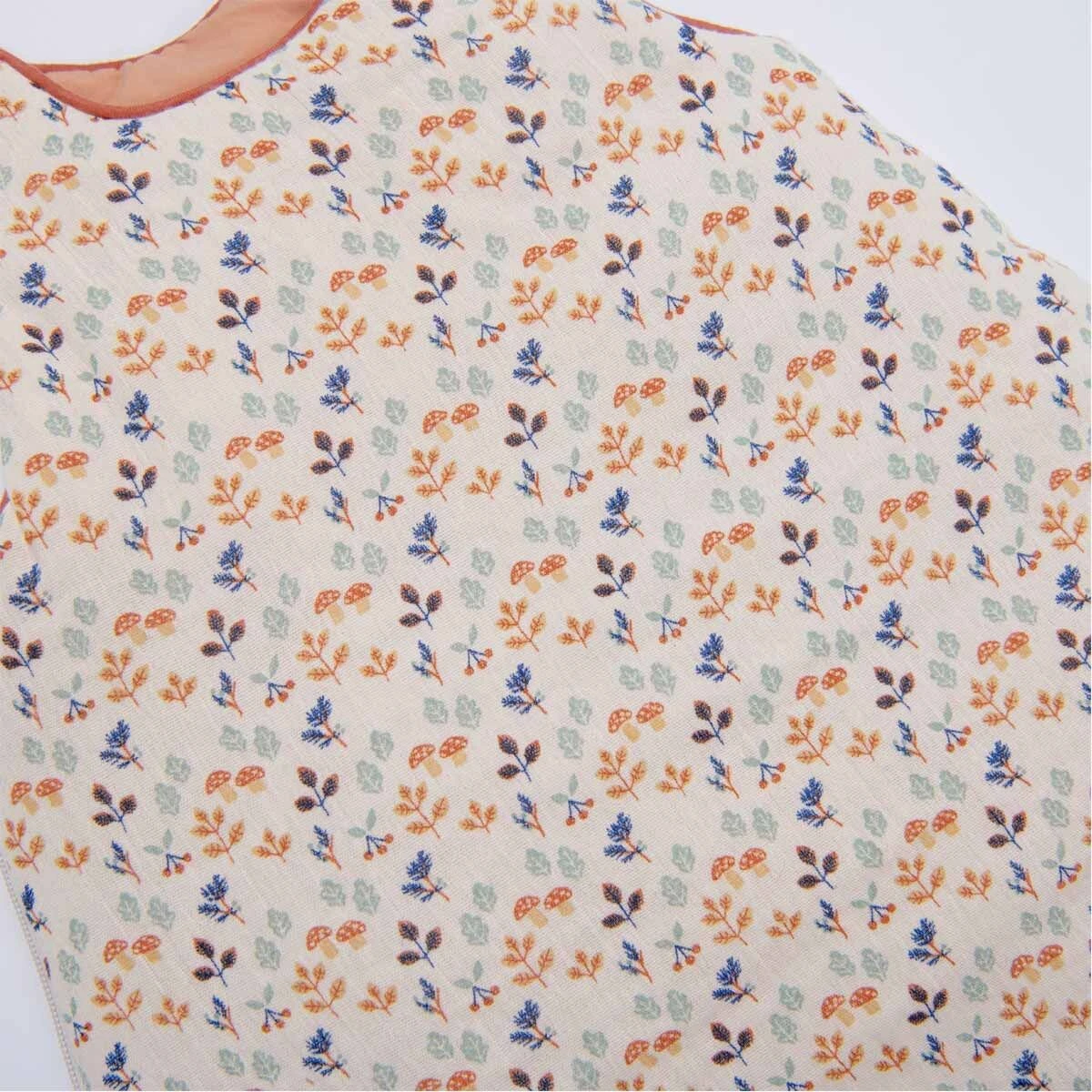 Gigoteuse 0-6 mois (TOG 3,8) en coton certifié OEKO-TEX®, avec imprimé cueillette à l’extérieur et doublure couleur argile. Fermeture à glissière et boutons-pression pour un habillage facile.