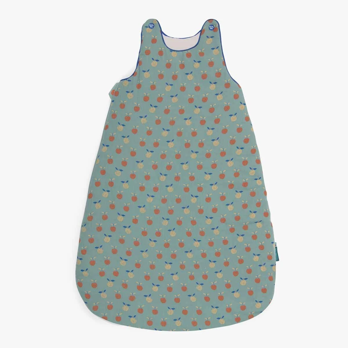Gigoteuse 0-6 mois (TOG 3,8)en coton certifié OEKO-TEX®, avec imprimé petites pommes à l’extérieur et doublure couleur crème. Fermeture à glissière et boutons-pression pour un habillage facile.