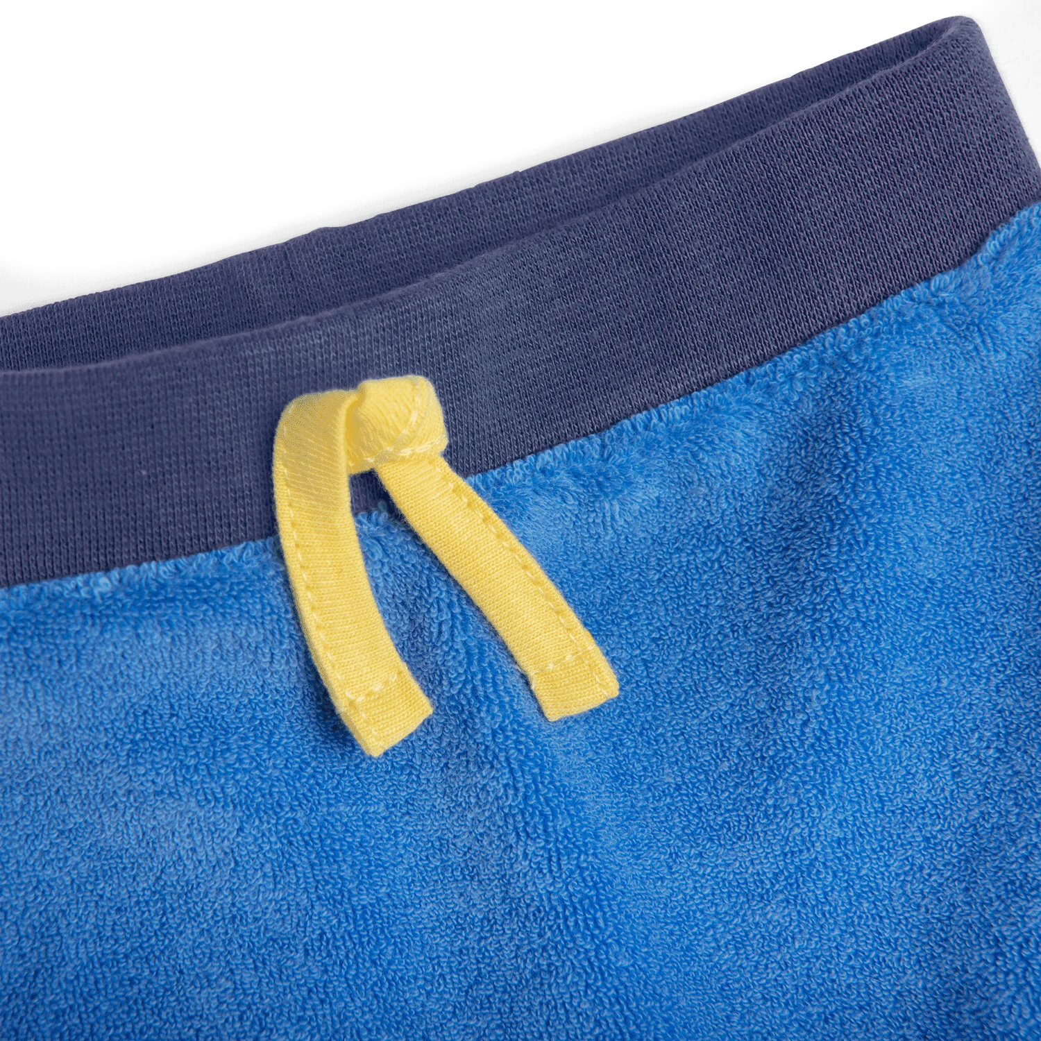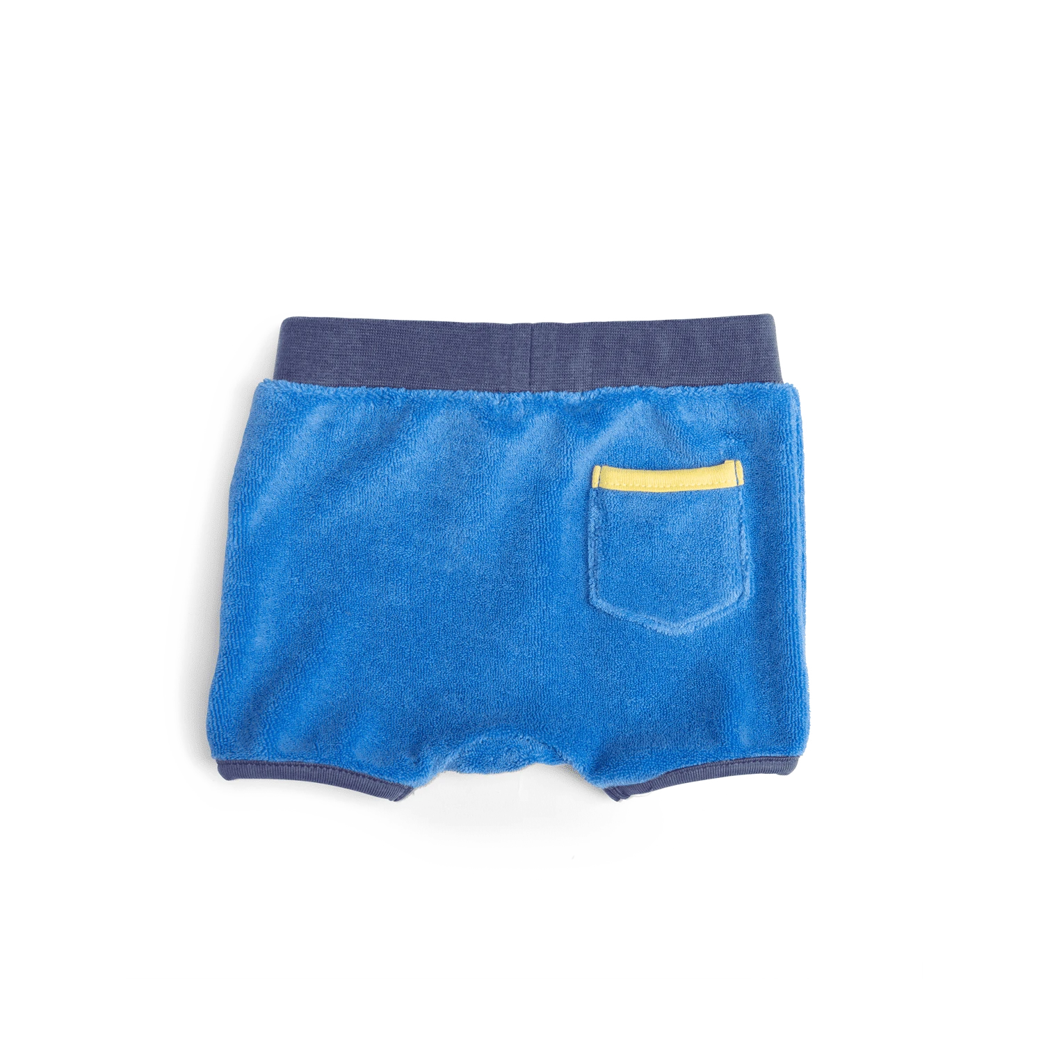 Short en bouclette éponge. Ceinture élastiquée à la taille et son lacet contrasté à nouer. Détail Print crabe sur le devant et petit poche plaquée au dos.