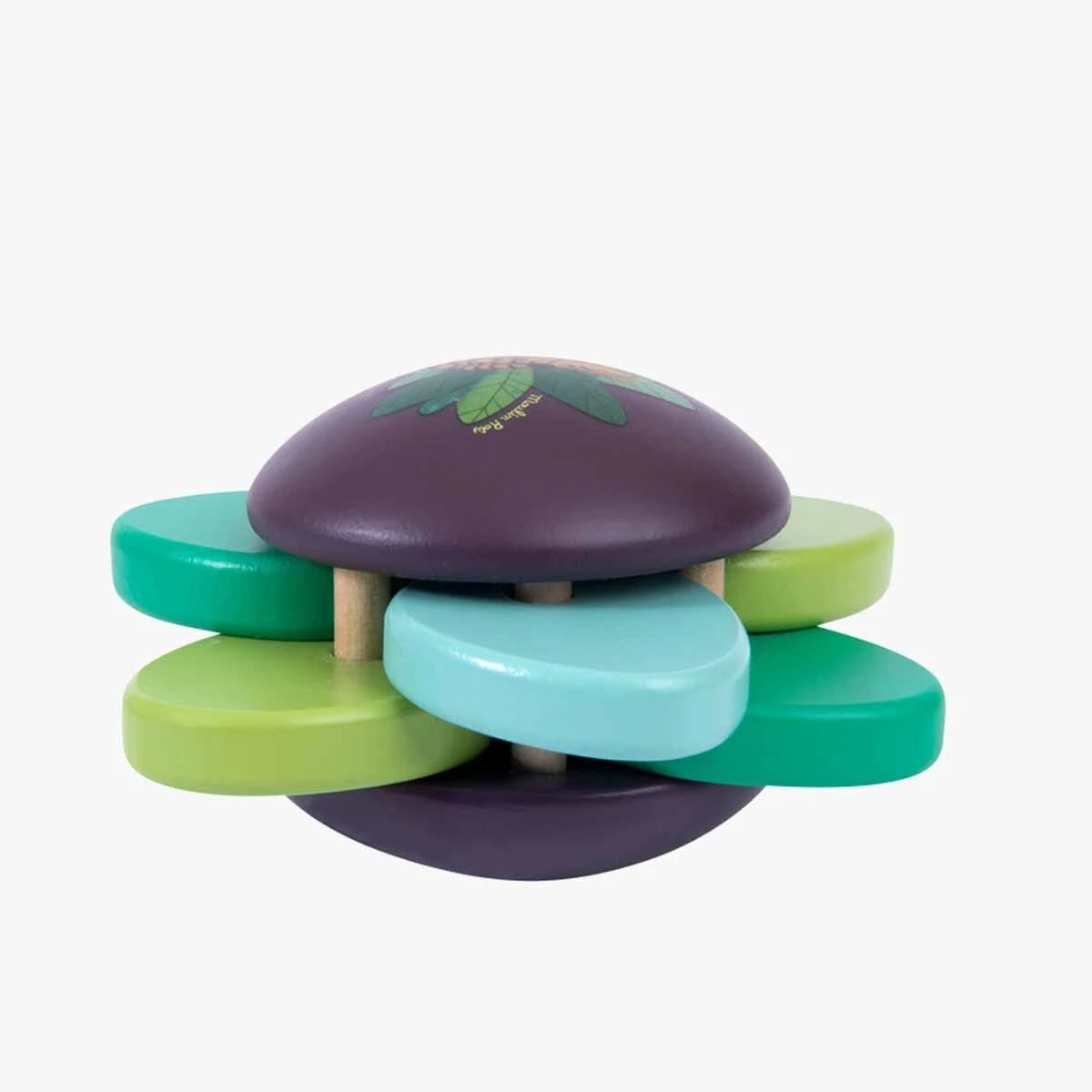 Hochet en bois aux allures de nénuphar, avec de jolies feuilles vertes au milieu desquelles se cache un grelot ! Un petit instrument facile à attraper et secouer pour les plus petits.