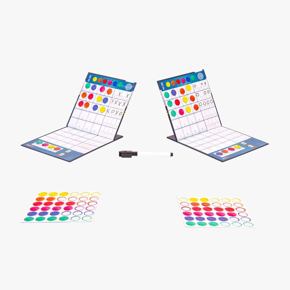 Décodez le plus rapidement la combinaison secrète de votre adversaire grâce à deux plateaux aimantés, un crayon effaçable et des magnets de six couleurs différentes. Un jeu de réflexion et de logique pour deux joueurs, idéal pour les longs voyages !