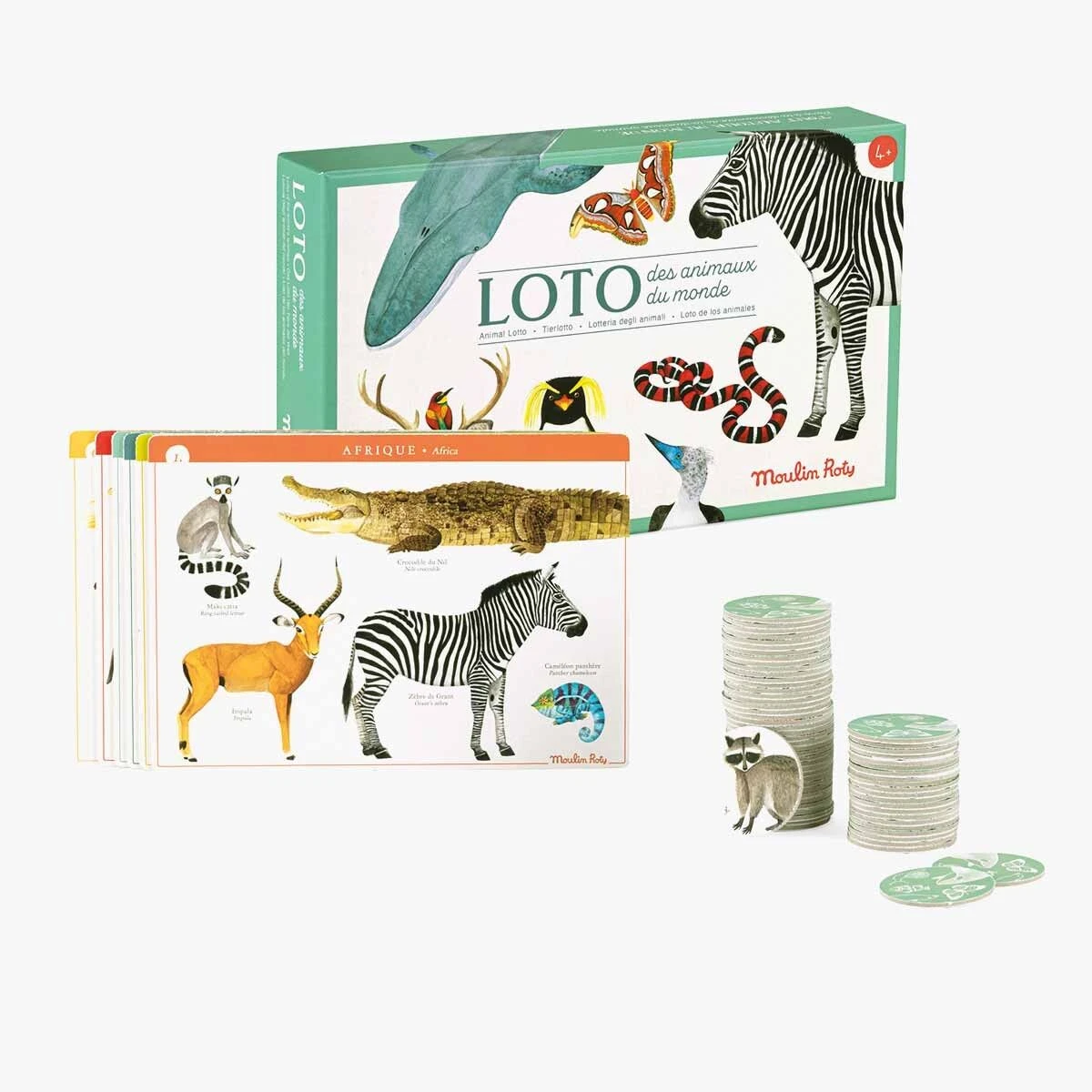 Joliment illustré, ce loto contient 6 planches continents recto-verso et 60 jetons. Le premier joueur à avoir complété entièrement sa ou ses planches remporte la partie. Idéal pour jouer en famille ou avec les copains. Conçu et fabriqué en France.