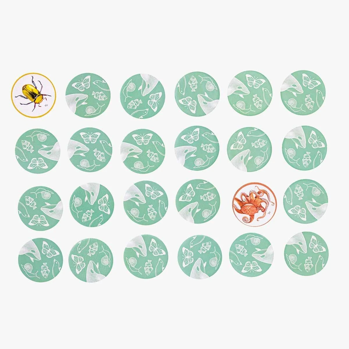 Jeu d’observation et de mémoire qui aborde le thème des animaux ! Toutes les cartes sont faces cachées sur la table, celui qui collecte le plus de paires d’animaux est le gagnant. Contient 36 cartes animaux x 2 et 1 poster.