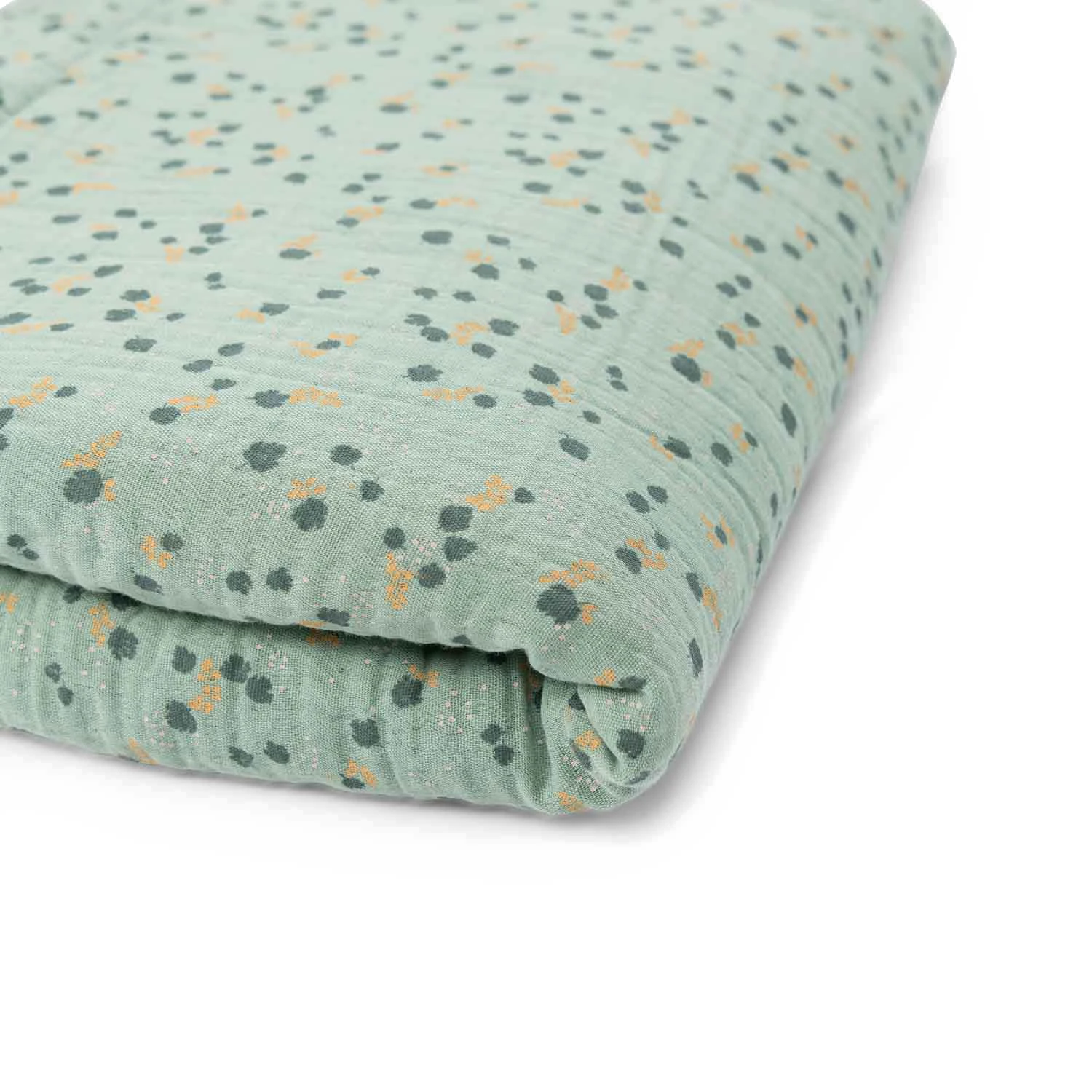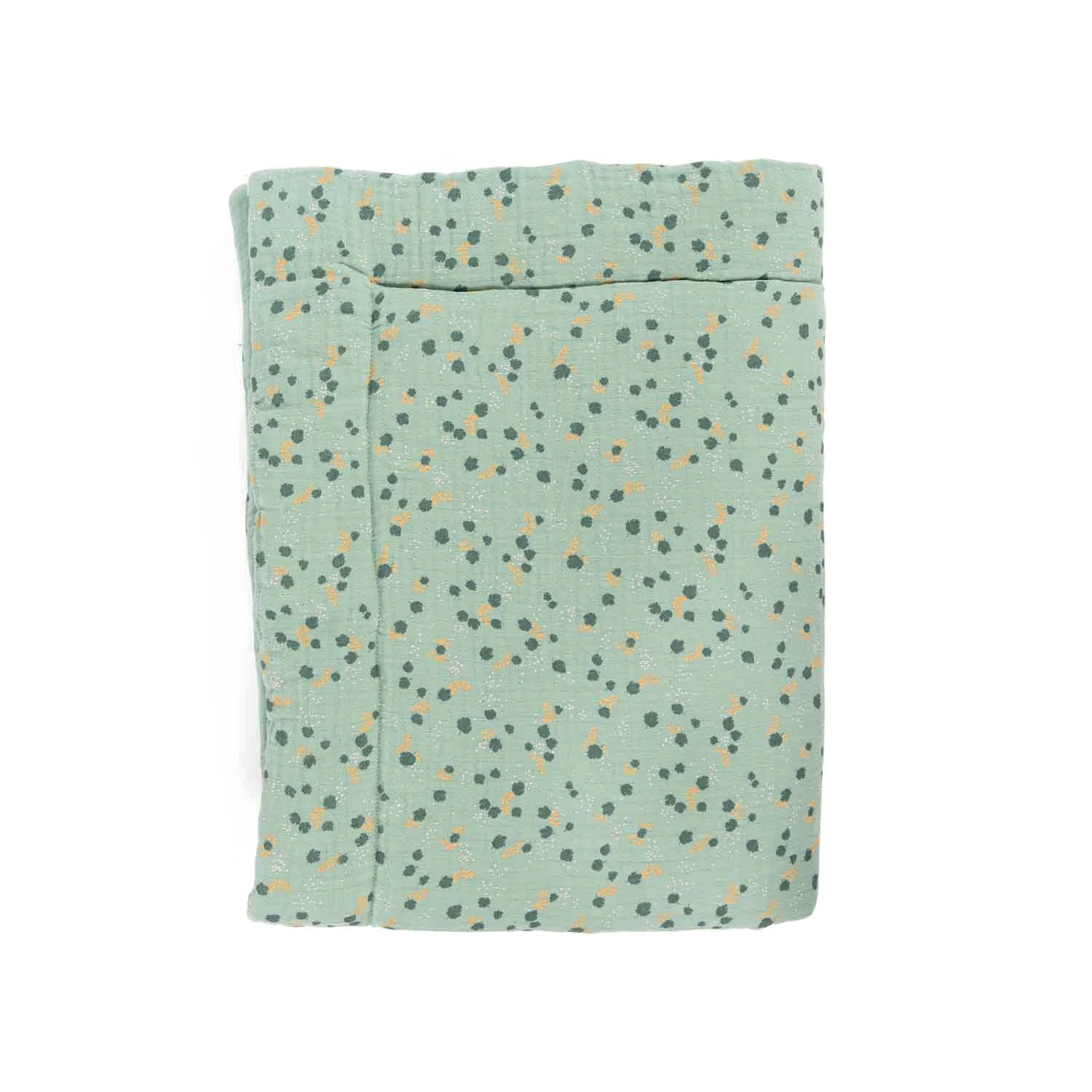Plaid sauge (90x70cm) en lange certifié OEKO-TEX ® avec motif végétal d’un côté. Doux et moelleux, il accompagnera bébé pour le tenir au chaud, tout en décorant sa chambre !