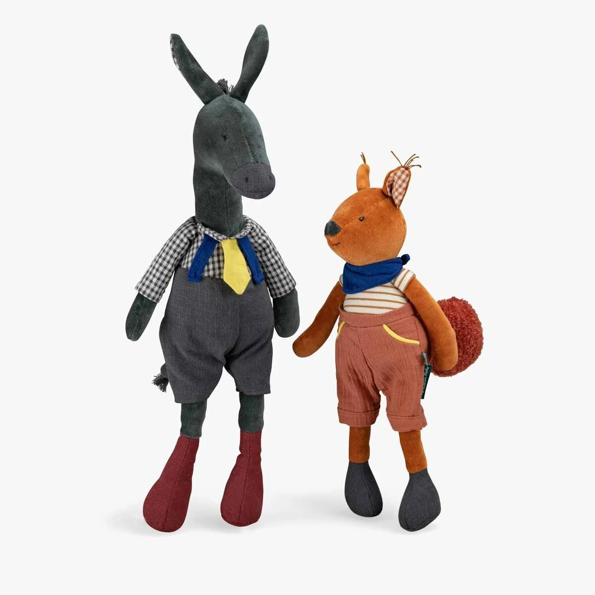 Tendre petit âne, certifié OEKO-TEX®, tout doux et coloré qui a fière allure dans sa salopette. Petit et pratique, c’est un âne adorable qui ne demande qu’à faire des câlins !