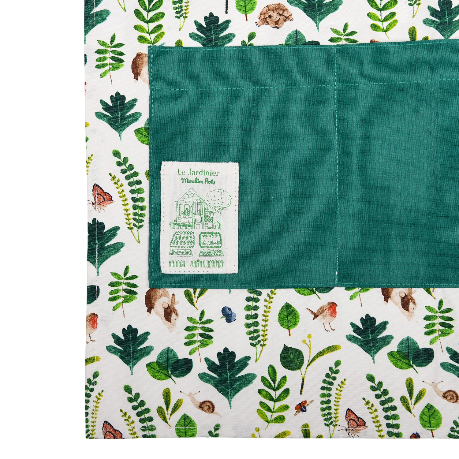 Ce joli tablier en toile lavable, illustré sur le thème du jardin, permet aux enfants de jardiner sans se salir. Il dispose d’une grande poche centrale compartimentée en 3 qui permet d’avoir toujours à portée de main, graines OU gants.