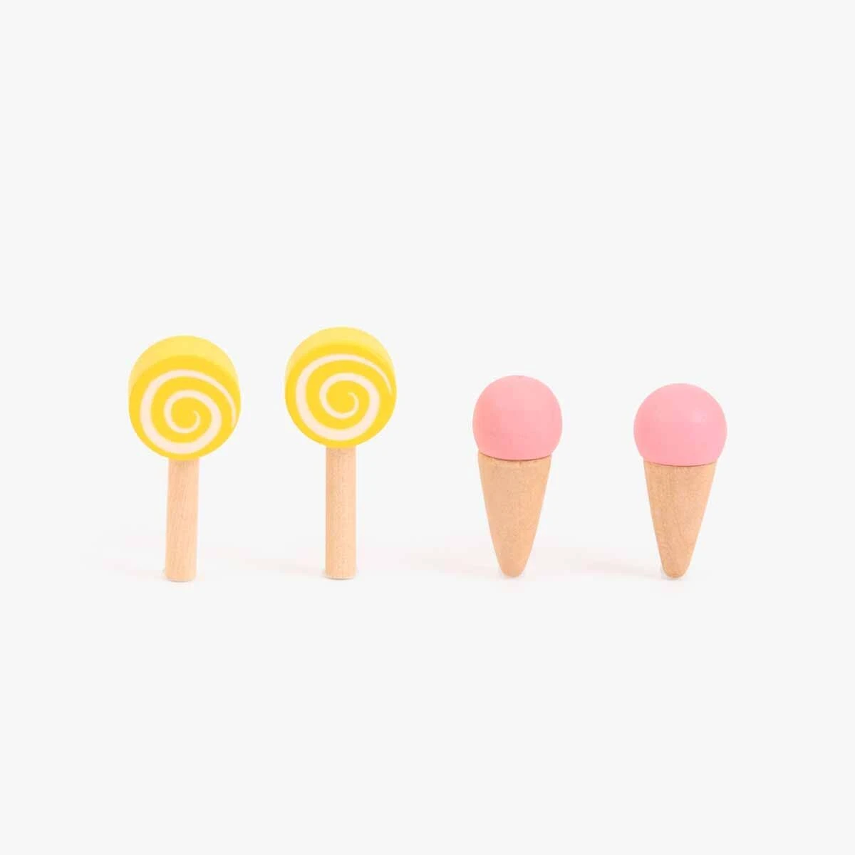 C’est l’été, il fait chaud et Nini la souris a préparé des glaces pour régaler la Grande Famille. Cet ensemble tout en bois inclut Nini, un parasol, 4 glaces et le triporteur du glacier à ouvrir pour y ranger les glaces au frais !